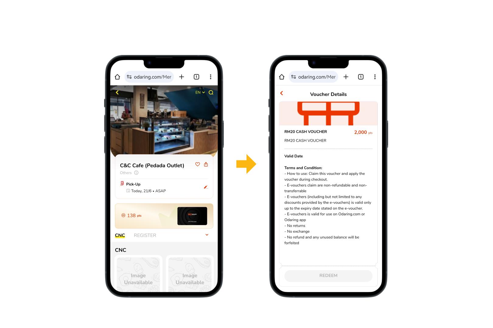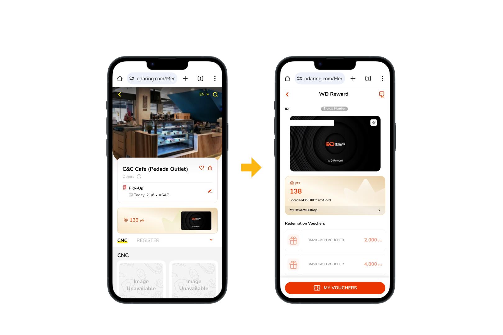 Go to www.welldonegrp.com/wd-reward-login. After login using your phone number, select available option under Redemption Vouchers (You need to have enough points to entitle redemption) . Click REDEEM after select your redemption.
