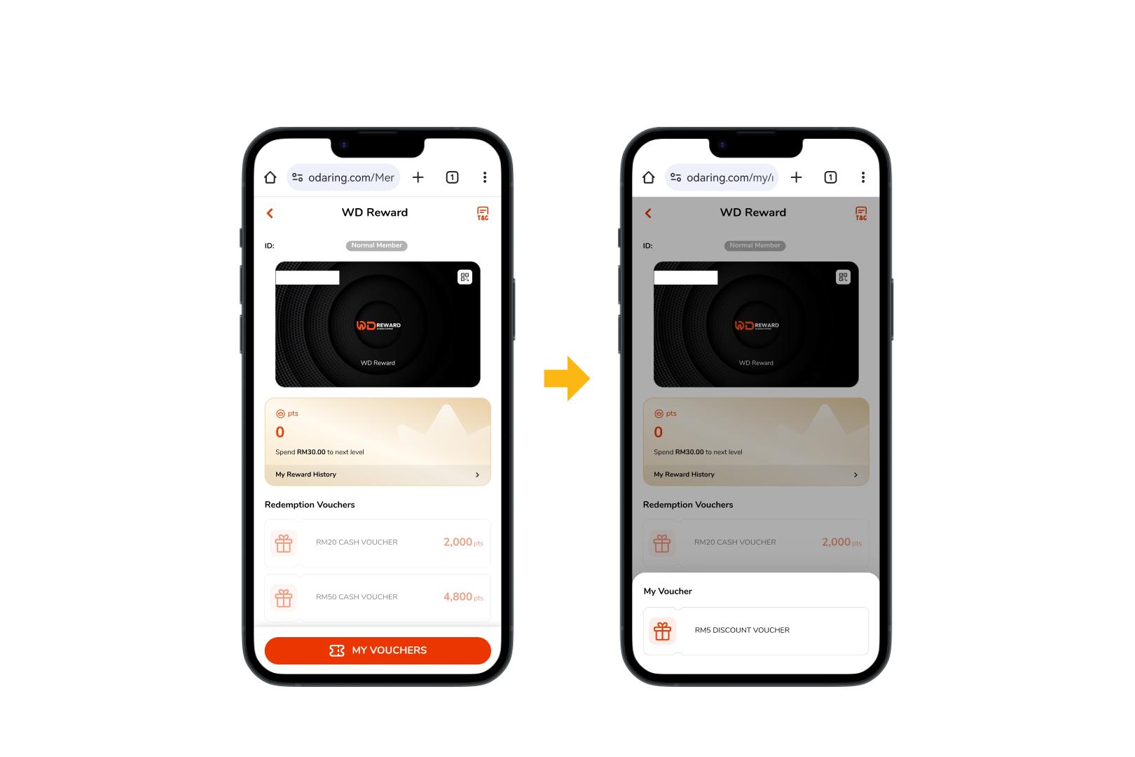 Go to www.welldonegrp.com/wd-reward-login. After login using your phone number, click MY VOUCHERS to view your existing vouchers.